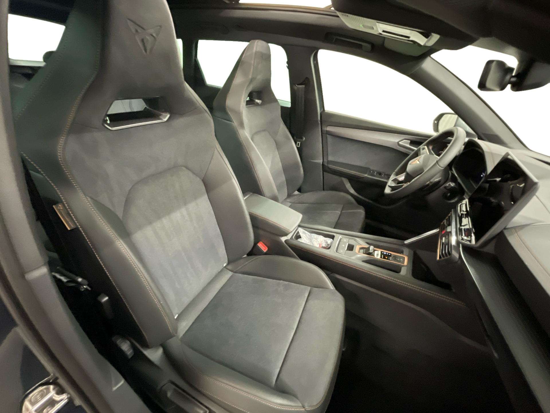 Innenausstattung CG - CUPRA Sportschalensitze vorne mit Sitzmittelbahn in Dinamica, Schwarz mit Blau Akzenten